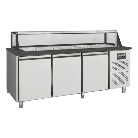 EASYLINE Zubereitungstisch / 3-fach mit Türen, Glasaufbau, für 5x GN 1/1 "schwarz", 2000 x 800 mm