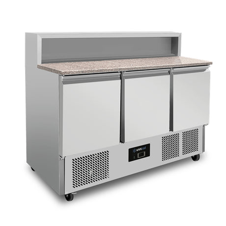 Pizza-Werkbank, 3-türig (GN 1/1), mit 8 × GN 1/6 Aufsatz | +2°C bis +8°C