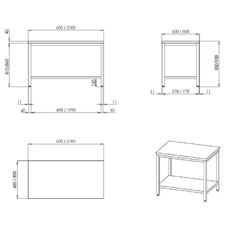 Sofort lieferbar: 3 - 5 WerktageEASYLINE Arbeitstisch 600 / unterfahrbar