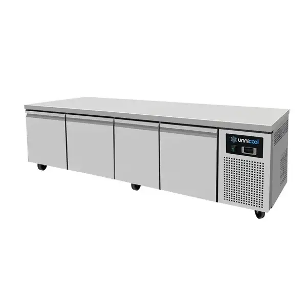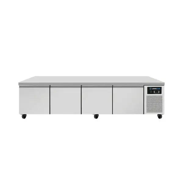 Dieser Profi niedrige Kühltheke verfügt über 4 Schubladen kompatibel mit 1/1 GN Behälter, die auch in kompakten Küchen einen einfachen Zugriff auf gekühlte Waren ermöglichen. Konzipiert für den intensiven täglichen Gebrauch, beinhaltet es hochwertige Schubladenschienen für einen reibungslosen und dauerhaften Betrieb. Das Gerät bietet Zwangsluftkühlung für eine gleichmäßige Temperaturverteilung, mit automatisches Abtauen und digitale Steuerungen für eine genaue Temperaturregulierung.