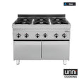 Der gewerbliche Gasherd von UnniCooking verfügt jetzt über verbesserte italienische Brenner für maximale Effizienz und Leistung. Mit 6,5 kW starken, überlappenden Doppelflammen liefert jeder Brenner intensive, konzentrierte Hitze – perfekt zum Grillen, Köcheln und Sautieren.