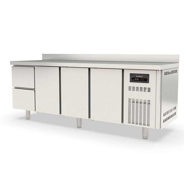 TOPLINE Kühltisch / 4-fach GN1/1 mit 2 Schubladen / 3 Türen & Aufkantung, 2245 x 700 mm