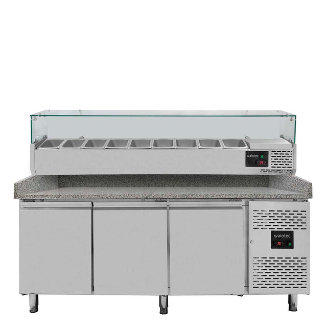 EASYLINE Pizzakühltisch / 3-türig "grau" inkl. Kühlaufsatz GN1/3, 2020 x 800 mm