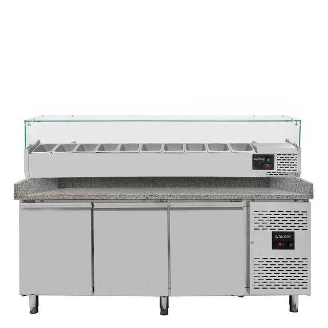 EASYLINE Pizzakühltisch / 3-türig "grau" inkl. Kühlaufsatz GN1/4, 2020 x 800 mm
