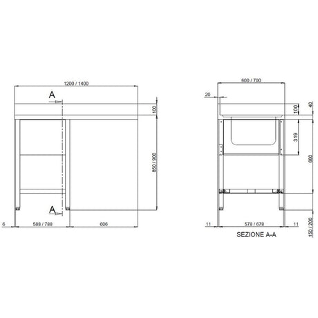 EASYLINE Spülzentrum 700 / 1 Becken links B:1200