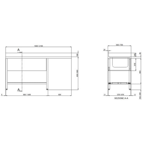 EASYLINE Spülzentrum 700 / 2 Becken links B:1600