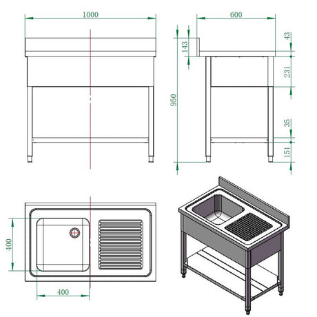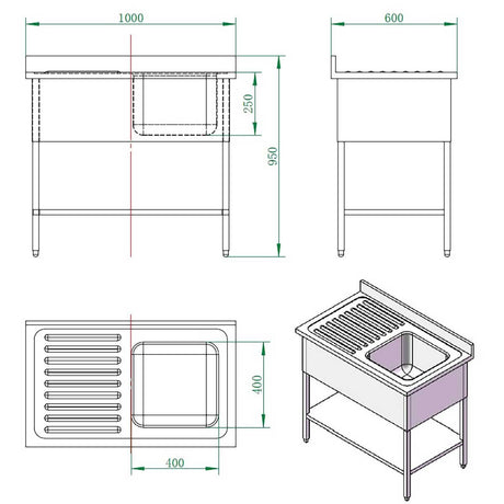 ECO Spültisch 100 x 60 x 85 cm - 1 Becken links