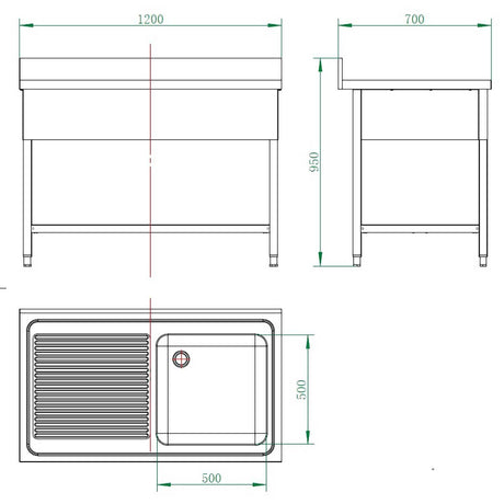 EASYLINE Spültisch 700 / 1 Becken links und Abtropffläche B:1200