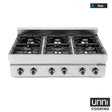 Der gewerbliche Gasherd von UnniCooking verfügt jetzt über verbesserte italienische Brenner für maximale Effizienz und Leistung. Mit 6,5 kW starken, überlappenden Doppelflammen liefert jeder Brenner intensive, konzentrierte Hitze – perfekt zum Grillen, Köcheln und Sautieren.