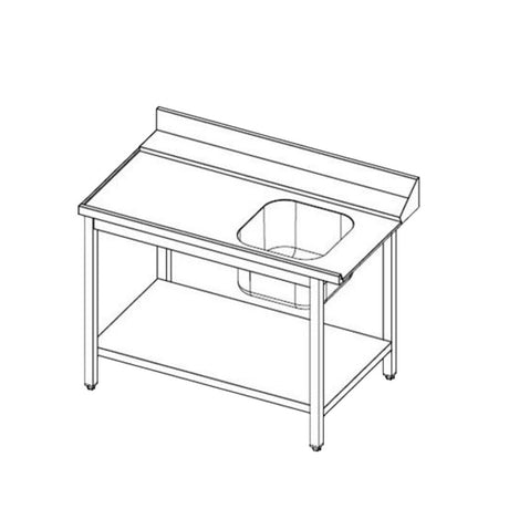 TOPLINE boşaltma tezgahı, arka yükseltmeli, sol yan eklemeli, 1200 x 700 mm