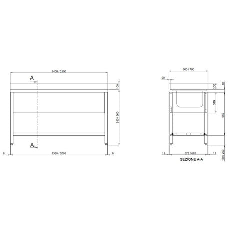 TOPLINE evye masası 600 / sağda 2 hazne + damlalık G:1600